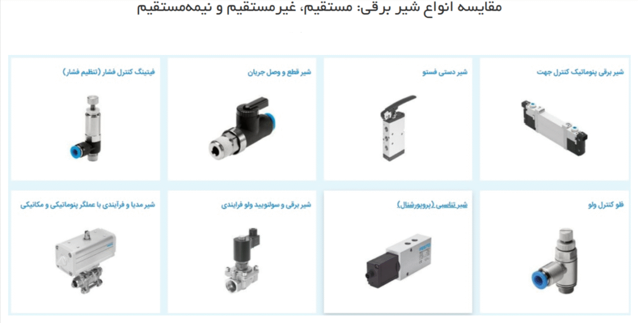 12 شهریور اتوماسیون صنعتی, مهندسی مکانیک مقایسه انواع شیر برقی: مستقیم، غیرمستقیم و نیمهمستقیم منتشر شده در admin شهریور 14, 1404 0 * **مستقیم:** جریان سیال، محرک را حرکت میدهد. * **غیرمستقیم:** محرک، پیستون را حرکت میدهد که سیال را کنترل میکند. * **نیمهمستقیم:** ترکیبی از دو روش بالا. ادامه مطلب